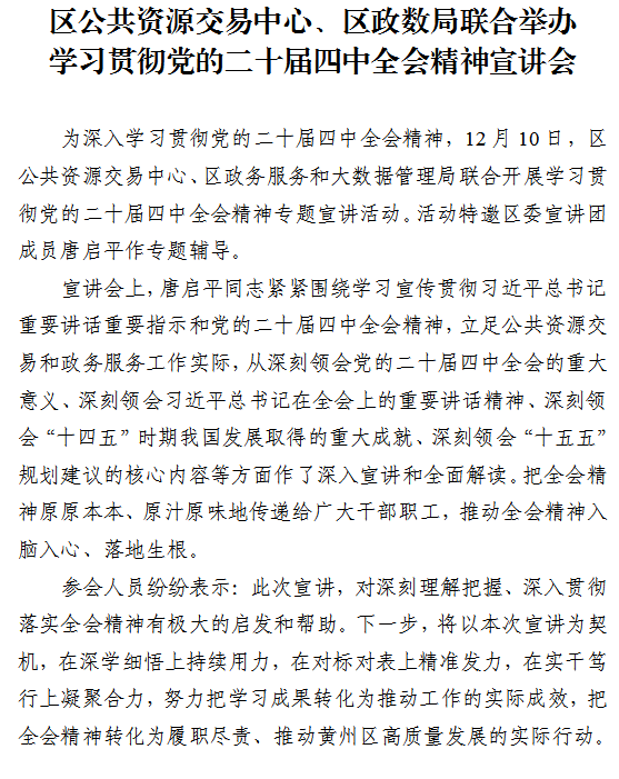 区公共资源交易中心、区政数局联合举办学习贯彻党的二十届四中全会精神宣讲会