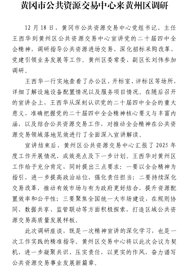 黄冈市公共资源交易中心来黄州区调研