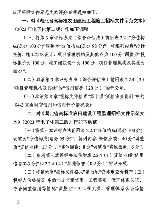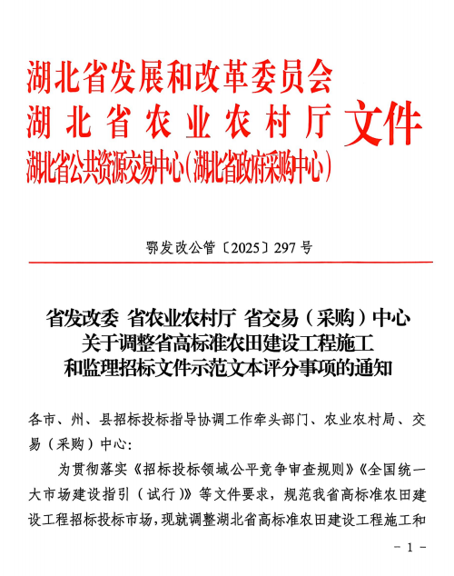 关于调整省高标准农田建设工程施工和监理招标文件示范文本评分事项的通知(鄂发改公管〔2025〕297号.pdf1.34MB点击下载